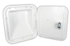 Hatch is made with a slant back that makes it perfect for use when a support or beam is located near its placement. Made of durable plastic for a long life that resists fading, discoloring, UV rays, road salts and acids. Can be painted to match exterior with no preparation. Cut out dimension: 7" H x 6-3/8" W. Outside dimension: 9-5/16" H x 8-3/4" W.